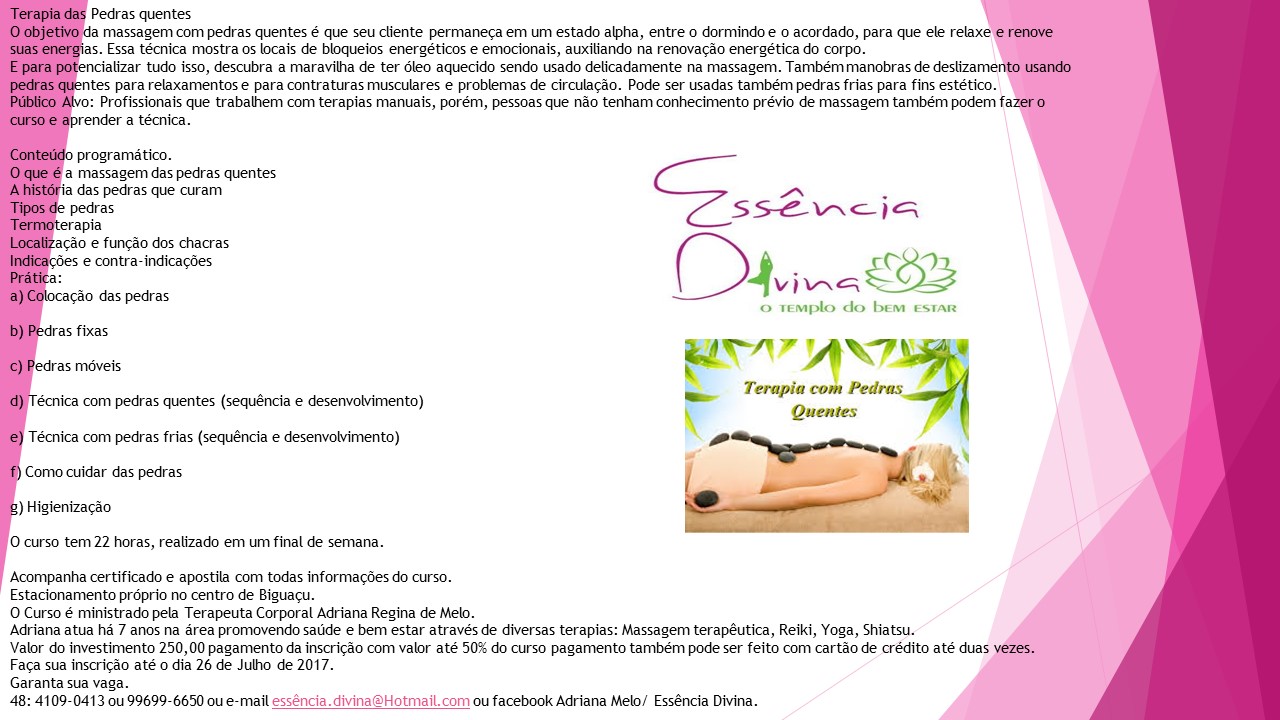 Local:Espaço Essência Divina Massoterapia e Yoga